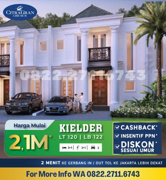 Rumah Dijual Di Perumahan Citra Gran Cibubur, Cibubur, kembali mengembangkan klaster Danehill bersama meluncurkan 3 tipe unit. Pertama Tipe 3 kamar tidur dengan luas bangunan 78 m2 ini merupakan jenis Preston. Ini untuk ikuti animo pembeli pada klaster Danehill. Setiap jenis punyai langit-langit dengan ketinggian 4 meter, layout-nya terhitung yang simple dan terbuka serta adanya taman di anggota belakang rumah. Tentang rancangan klaster Danehill yang mempunyai pemandangna danau buatan dan lingkungan yang rindang.
